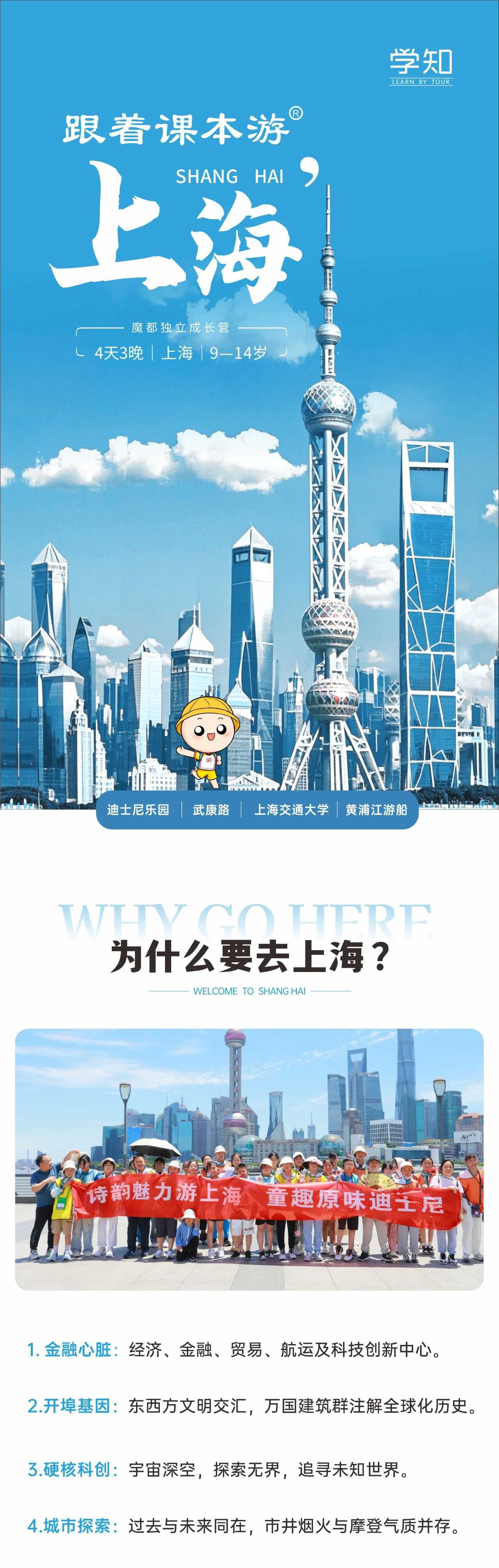 武汉研学、湖北研学、长江研学就找学知 出发上海SShangHai行程时间 |4天3晚招募对象 |9岁以上儿童,单飞独立营可报团期 | 毕业旅行:6月23日-6月26日 第1期:6月29日-7月2日 ...