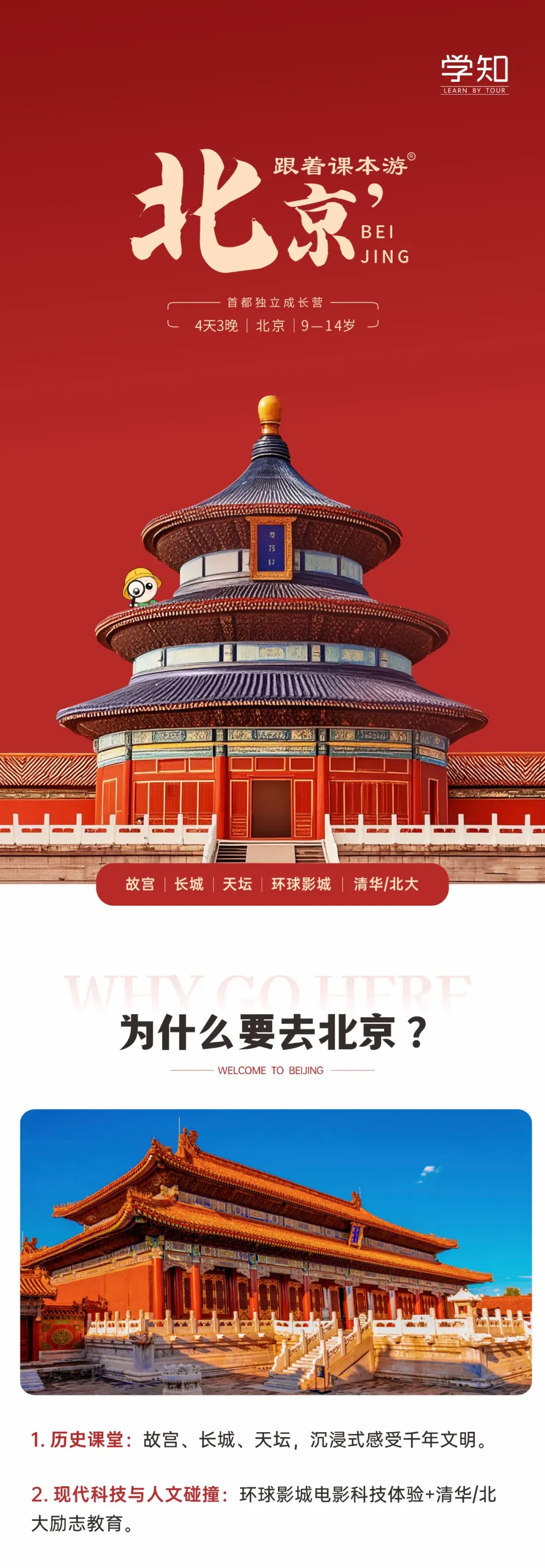 出发北京Beijing行程时间 |4天3晚招募对象 |9岁以上儿童,单飞独立营可报团期 | 毕业旅行:6月23日-6月26日 第1期:6月28日-7月1日 第2期:6月30日-...