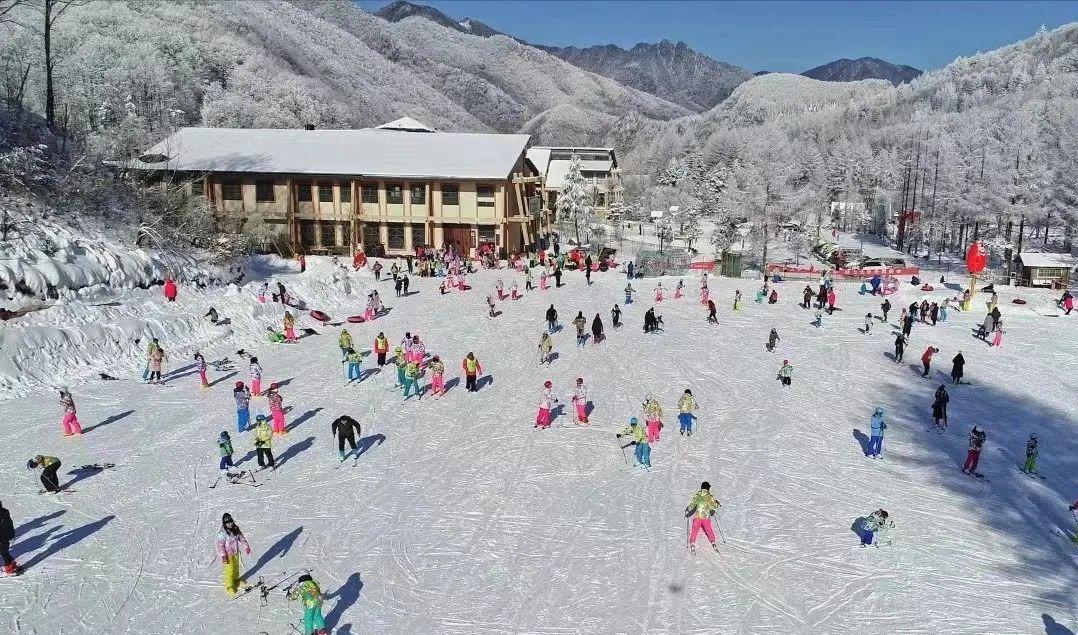 我们选择了一个最适合孩子学滑雪的雪场。神农架中和国际滑雪场占地6万平方米,拥有华中地区最长的8条雪道,有近3000平方米的儿童滑雪场教学专区。
